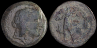 Herakles leaning on club, holding skin of Nemean lion and an apple