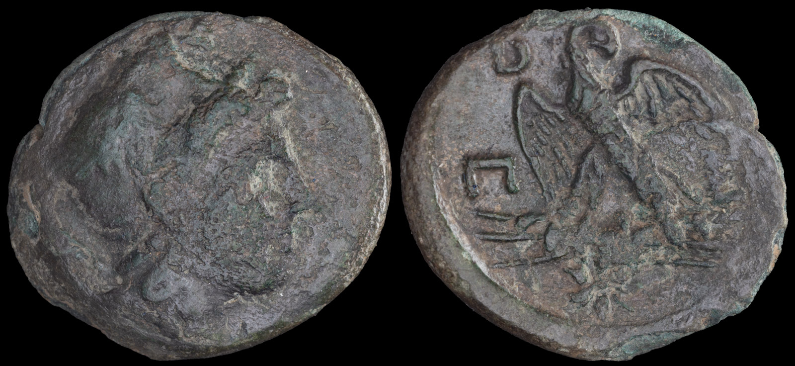 Obv: Head of Zeus right wearing wreath of oak leaves