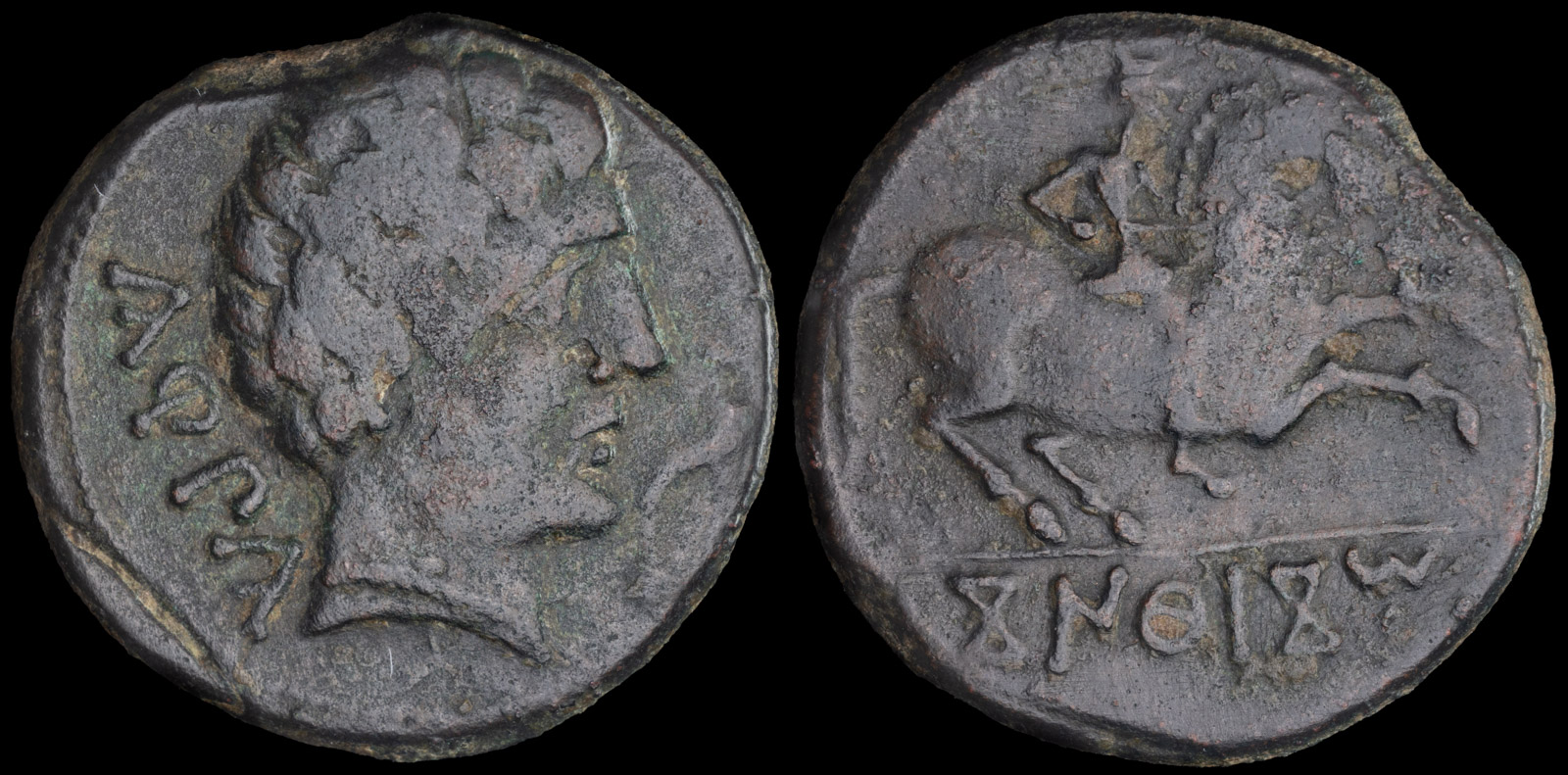 Rev: Horseman with lance, Iberian legend ‘CoNTeBaCoM’ below