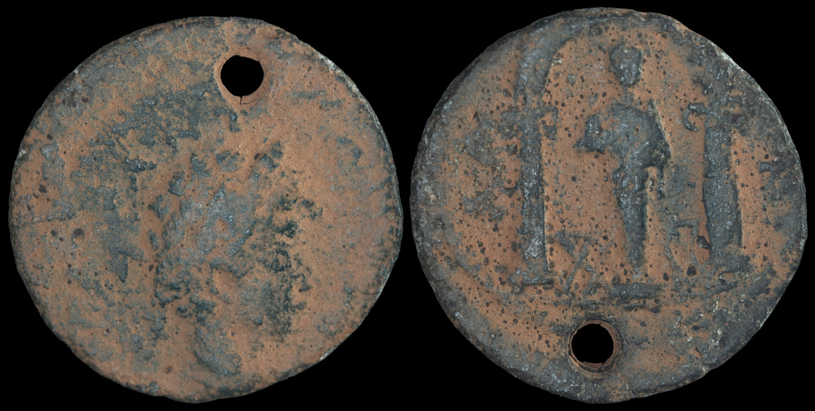 To me, the hole reaffirms that someone felt either the obverse or reverse (or both) was very important, enough to punch and wear it. Based on the small ridges around the hole on the obverse, the coin appears to have been laid down with the reverse face up and the punch exited through the obverse.