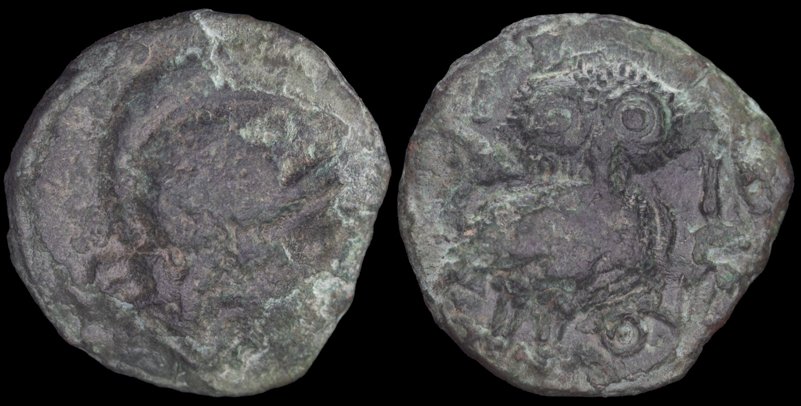 Obv: Head of Athena r., wear Corinthian helmet with crests and, on visor, snake ornament