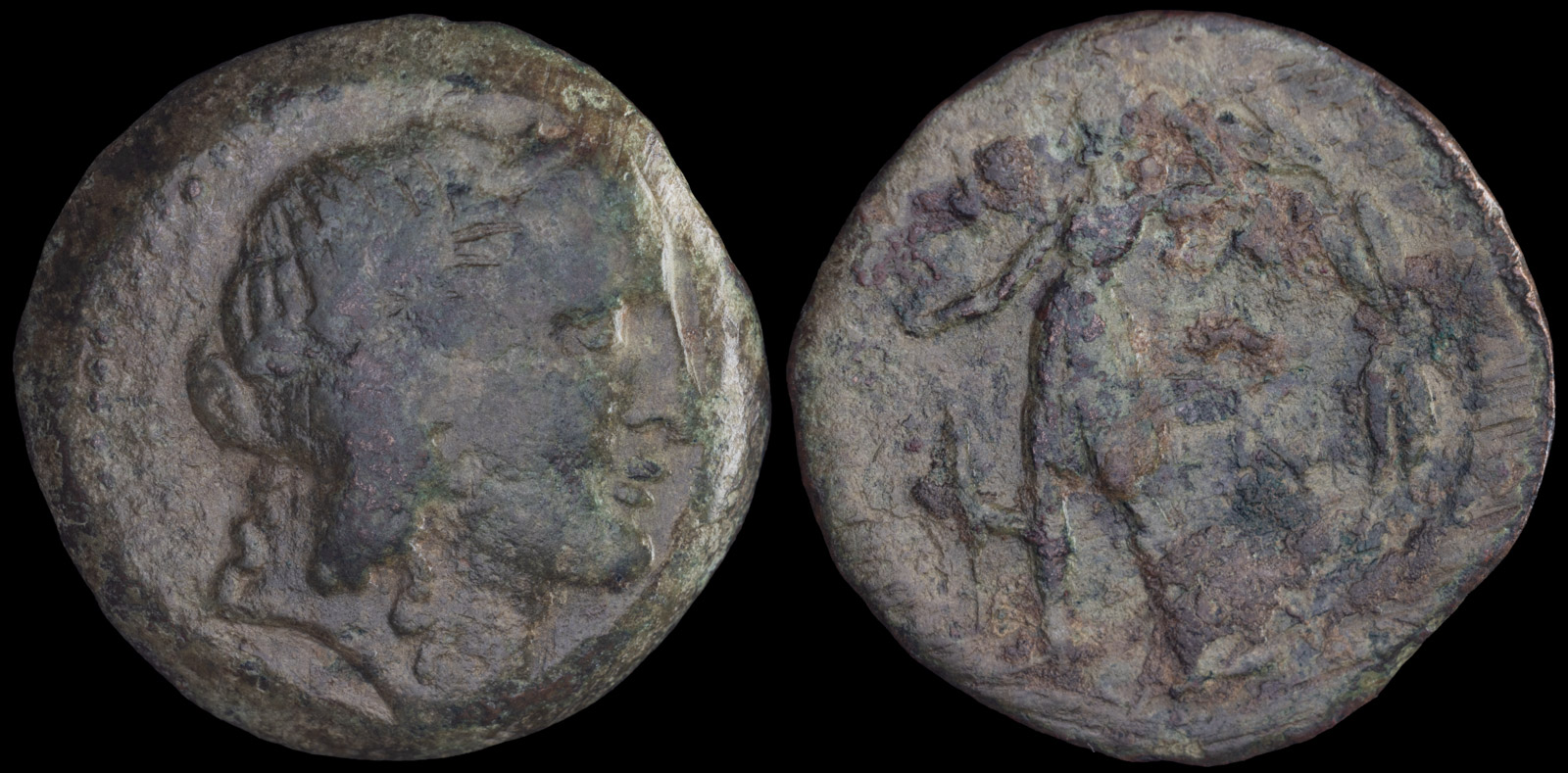 Moving later, King Nabis has one extant tetradrachm in a museum, and several falsely attributed bronzes that were actually minted far later. Kleomenes III minted both silver and bronze coins that are available on the market, though both are rare. Originally I had planned to add one of the bronzes when one came to auction.