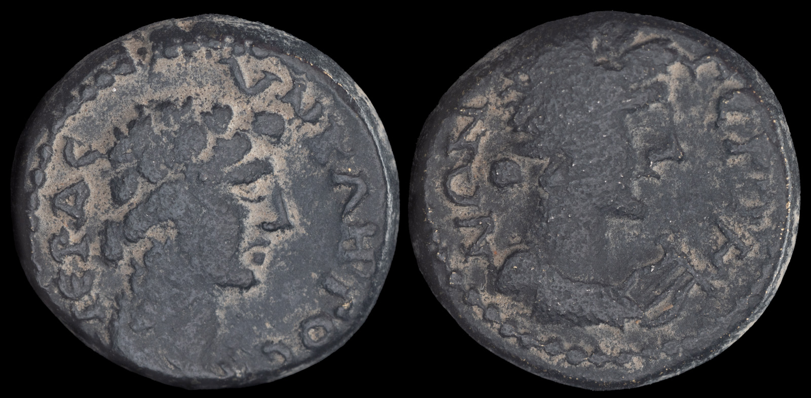 Rev: ΤΙΒЄΡΙΟΠΟΛΙΤ / ΒΟVΛΗ / ΓЄΡΟV, Gerousia and Boule standing facing one another.